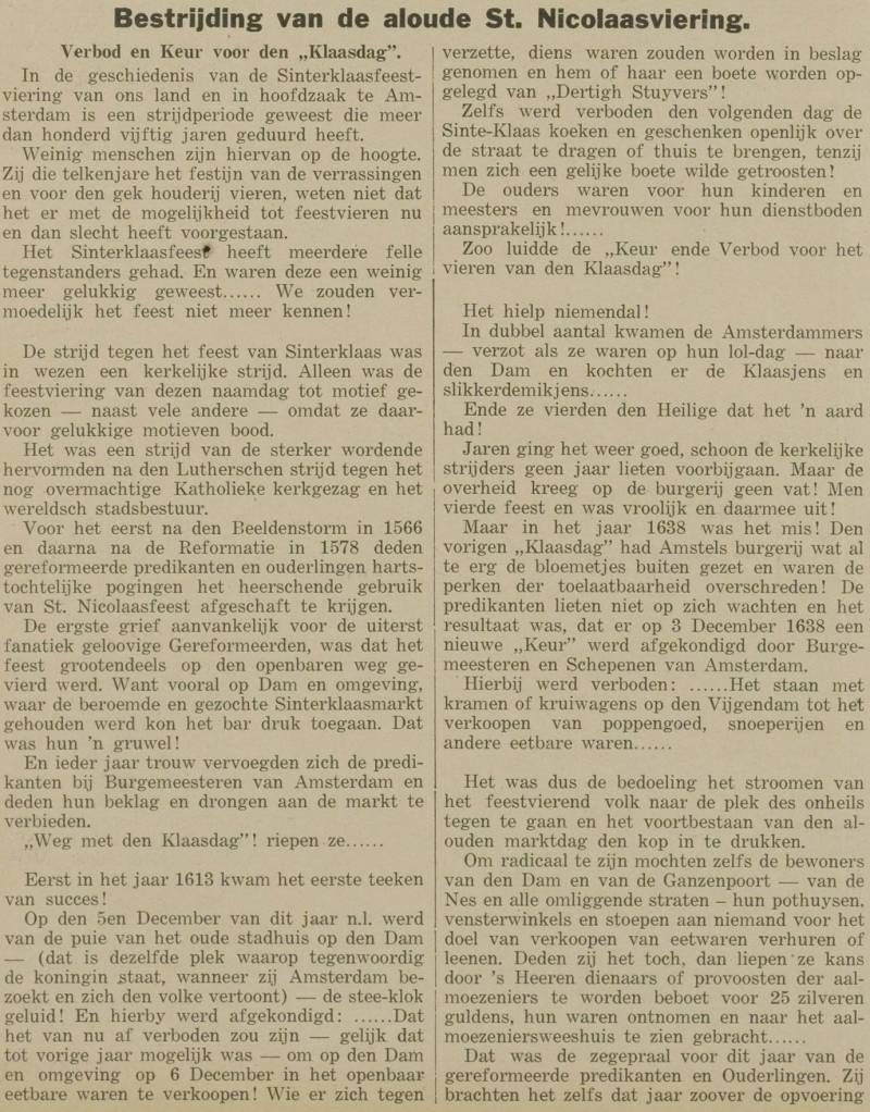 Bestrijding van de aloude St. Nicolaasviering