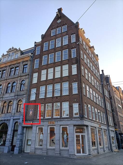 Opmerking: Op Adriaan van Nieuwlands schilderij (1633), ‘Ommegank der Leprozen op Copperties maendag opgehouden in ‘t jaar 1604, is een ovaal bord te zien dat aan ijzeren stang van het huis hoek Dam/Damrak hangt. Hierop staat Sinterklaas met een tobbe met drie kinderen. al in 1564 heete het huis ‘Thuys genaempt Sinter Claes’. In dit huis verkocht men ham, spek en worst.
