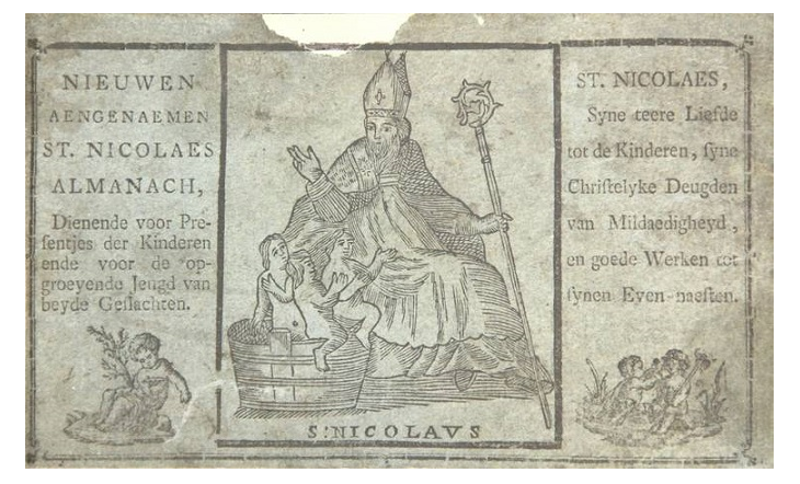 Het Haags Gemeentearchief heeft 6 Nicolaas Almanakjes. Buitengewoon aardig én zeldzaam is de St. Nicolaas Almanach van 1766. Op de titelprent rijdt Nicolaas in bisschopshabijt op een paard over het land en schenkt de hem omringende kinderen allerlei gebruiksvoorwerpen. Het in oblong-delen uitgegeven werk werd tot 1782 in Den Haag gedrukt door Pieter Servaas en daarna door J.F. Jacobs de Agé. De boekjes zijn deels almanak en deels prentenboek.