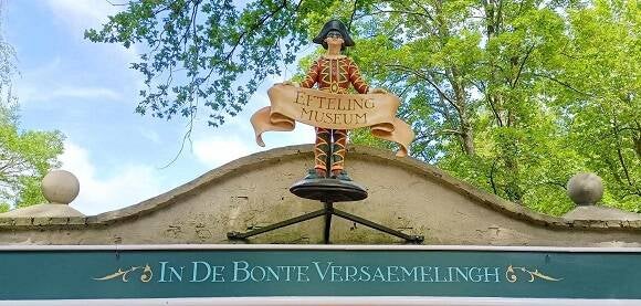 De oorspronkelijke naam, aangegeven door een harlekijnfiguur op de gevel met een banier in zijn handen, kan een verwijzing zijn naar het bekende Sinterklaaslied ‘Zie de maan schijnt door de bomen’ van J.P. Heije, waarvan oudere lezers nog het tweede couplet kennen als “O, wat pret zou ‘t zijn te spelen / met die bonte harlekijn” (tegenwoordig vaak gezongen als “met die mooie nieuwe trein”). De harlekijnfiguur staat er nog, maar geeft nu “Efteling Museum” aan. Op de luifel eronder staat In de Bonte Versamelingh, die de nieuwe functie als museum samenbrengt met de originele naam van de winkel.